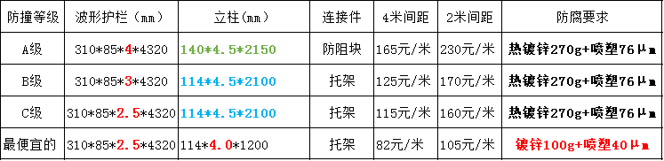 常用噴塑三波形護欄規格參考價: