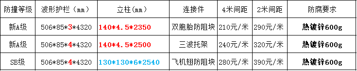 常用鍍鋅兩波形護欄規格參考價: