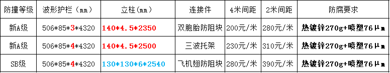 常用噴塑兩波形護欄規格參考價: