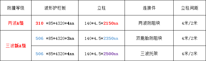 兩種A級波形護欄規格對比如下: