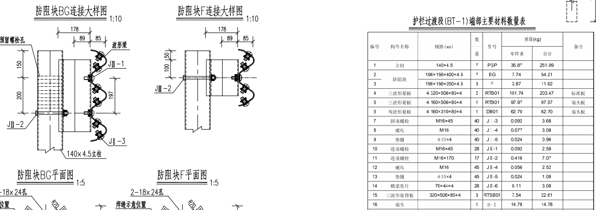 在波形護欄代碼中BT-1通常表示的是端部翼墻式波形梁與混凝土護欄過渡段。具體規格需要看設計圖紙,有的是兩波護欄,有的是三波護欄。