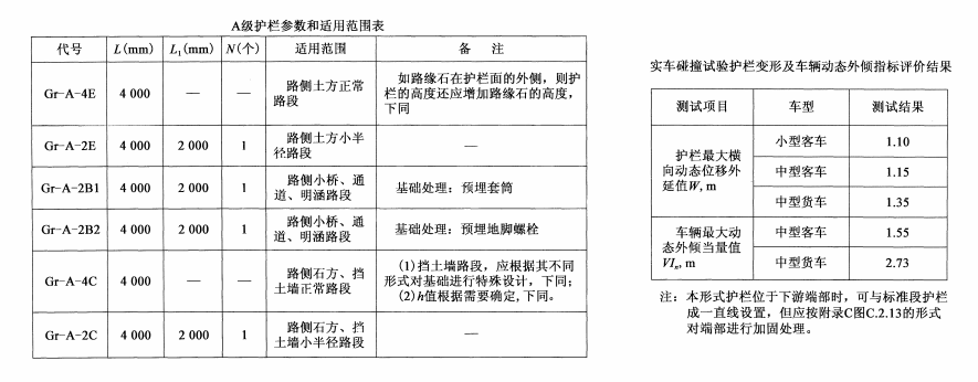 兩種形式三(A)級波形梁護欄可吸收的碰撞能量同為160KJ,在實際應用中可以根據土路肩寬度、護欄變形、資金成本等情況選用。