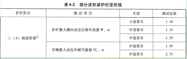 三(A)級波形梁護欄碰撞試驗變形值:
