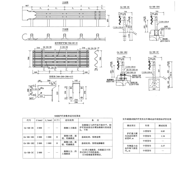 四、SB級波形梁護欄一般構造示例如下圖所示: